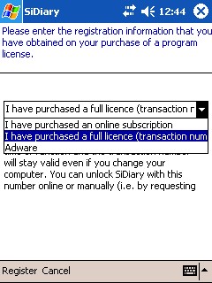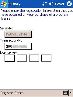 Should you have purchased a SiDiary USB stick, the transaction number can be found by starting SiDiary on the stick and then switching into the menu 'Help -> Register'..