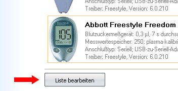 Sie können auch mit dem Button 'Liste bearbeiten' die Anzeige der Messgeräte auf die Geräte beschränken, die Sie tatsächlich nutzen: